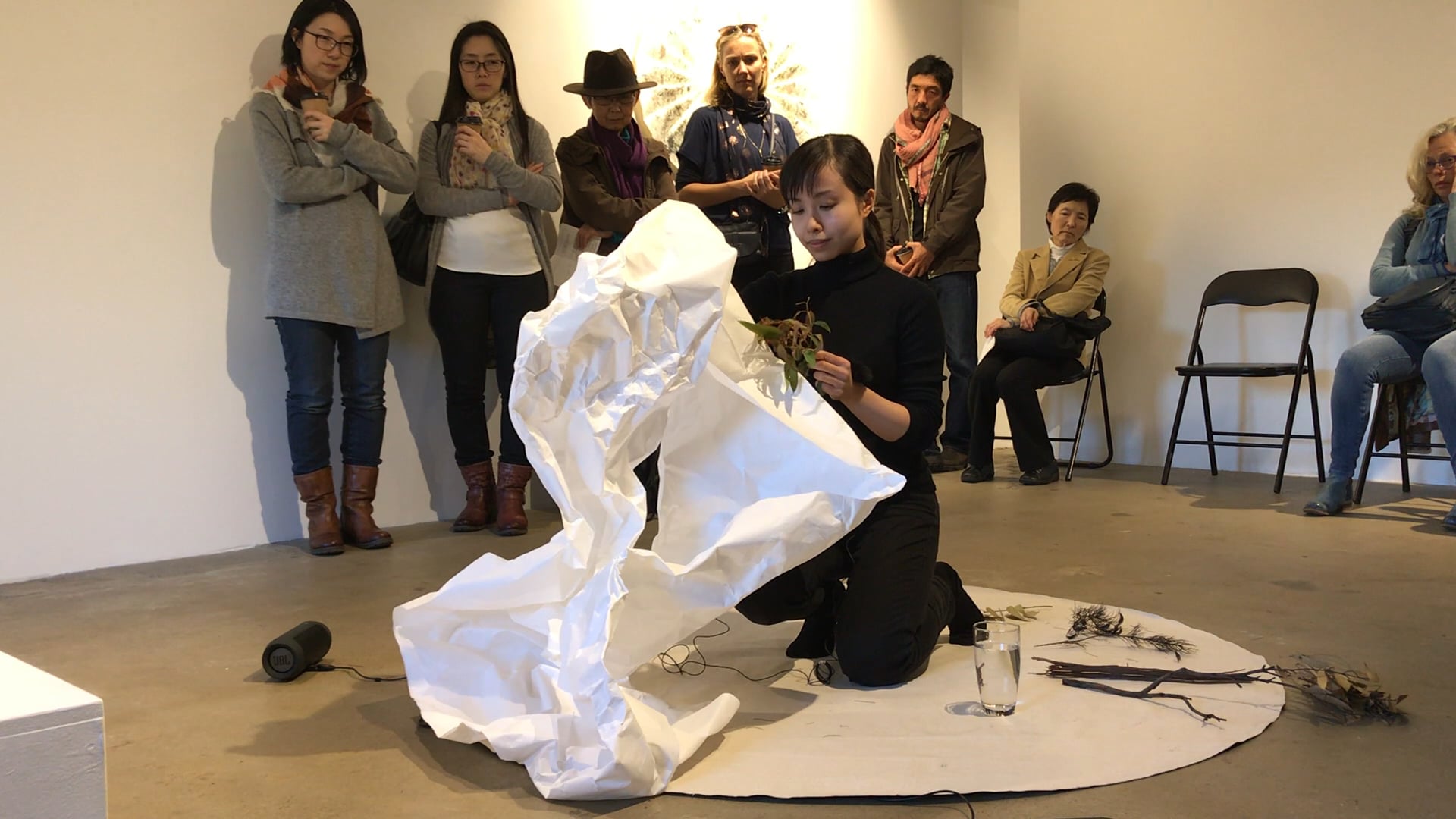 A performance of sound feedback drawing by Cindy Yuen-Zhe Chen at Incinerator Art Space in Sydney, Australia.