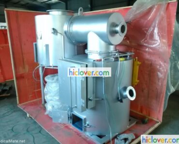 El nuevo incinerador con capacidad de 20 kg por hora estaba terminado y listo para su envío. Este incinerador es de combustión directa de petróleo y de pequeña escala.