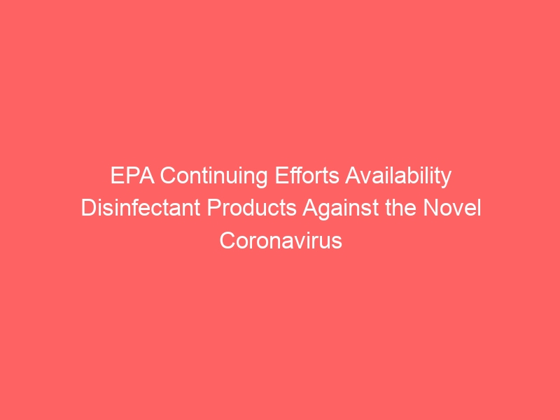 EPA Continuing Efforts Availability Disinfectant Products Against the Novel Coronavirus