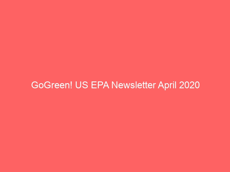 GO GREEN EPA News You Can Use – April 2019 https://www.epa.gov/newsroom/gogreen IN THIS ISSUE: Special: Response to Coronavirus Recent News What You Can Do, What You Can Use En español: Spanish Feature Multimedia Upcoming Events and Opportunities About This Newsletter EPA RESPONSE TO CORONAVIRUS (COVID-19). EPA’s Coronavirus website provides key EPA resources and links…
