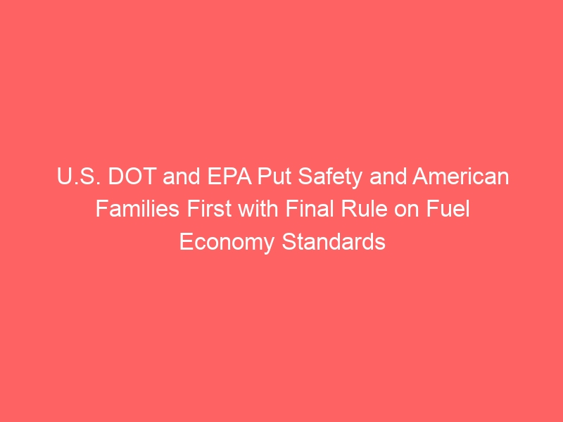 U.S. DOT and EPA Put Safety and American Families First with Final Rule on Fuel Economy Standards