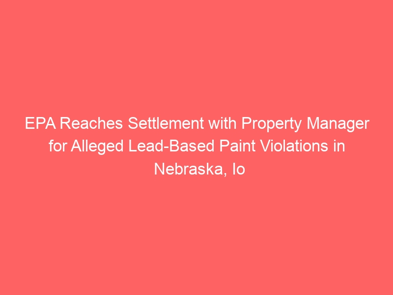 EPA Reaches Settlement with Property Manager for Alleged Lead-Based Paint Violations in Nebraska, Iowa and Missouri