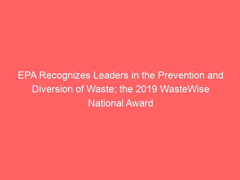 EPA Recognizes Leaders in the Prevention and Diversion of Waste; the 2019 WasteWise National Award