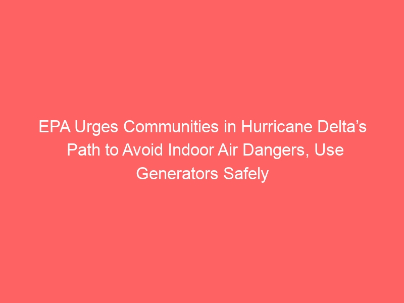 EPA Urges Communities in Hurricane Delta’s Path to Avoid Indoor Air Dangers, Use Generators Safely