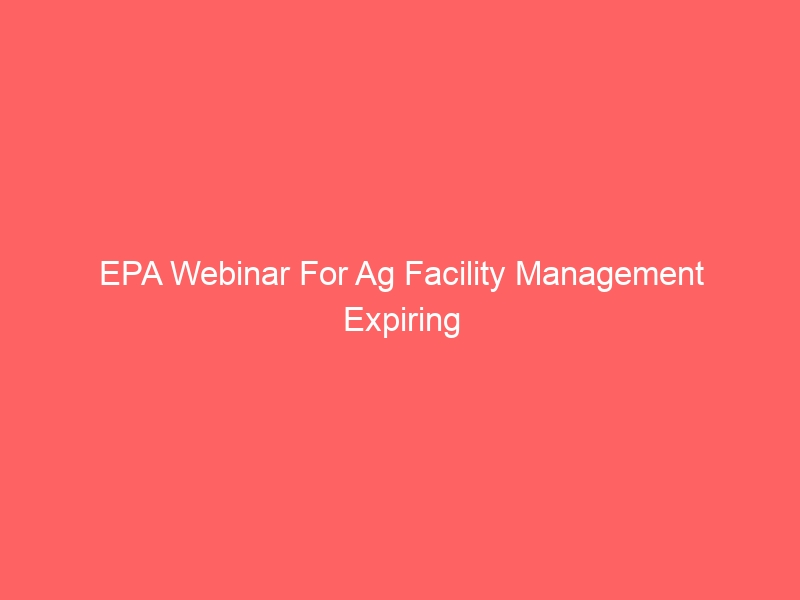 EPA Webinar For Ag Facility Management Expiring