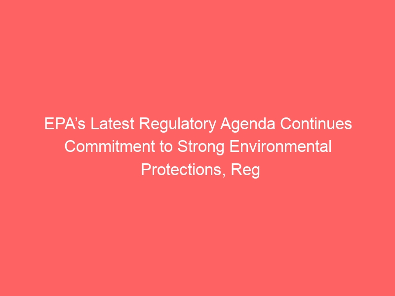 EPA’s Latest Regulatory Agenda Continues Commitment to Strong Environmental Protections and Regulatory Reform into 2021