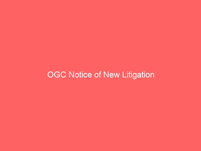 US EPA Notice of New Litigation