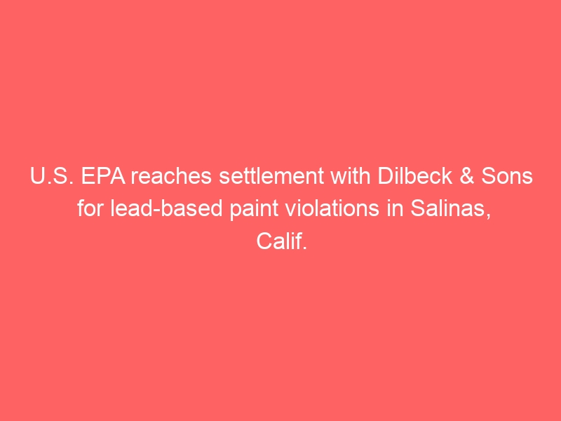 U.S. EPA reaches settlement with Dilbeck & Sons for lead-based paint violations in Salinas, California Construction company will pay over $22,000 in penalties